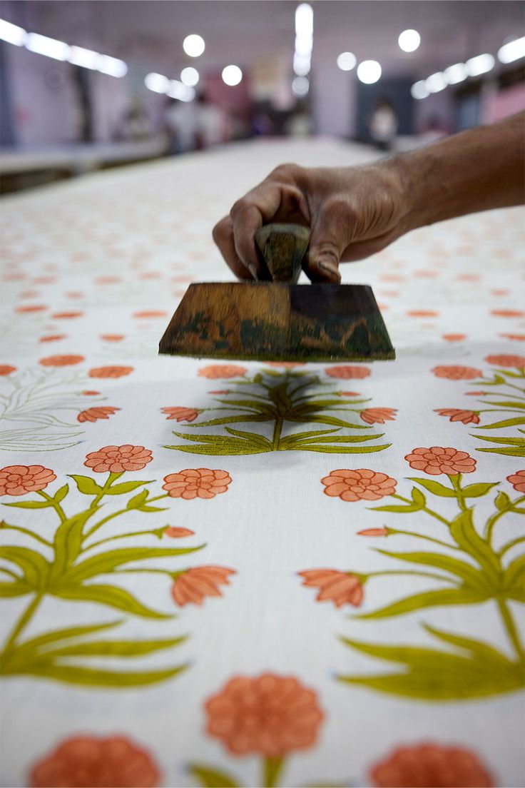 The traditional process of hand block printing on textiles, with rich natural colors, has been practiced in Rajasthan, India for over 500 years.